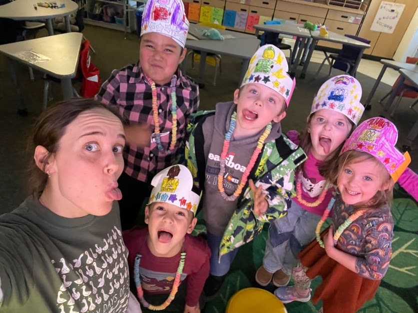 K/1 students celebrating the 100th day of school at Red Feather!